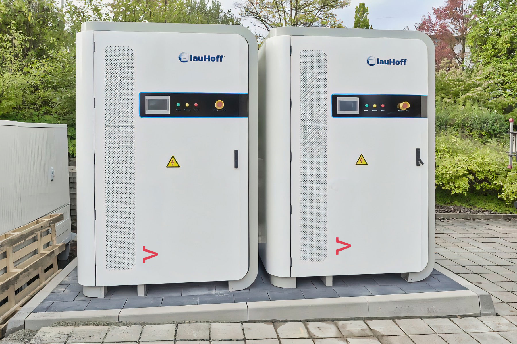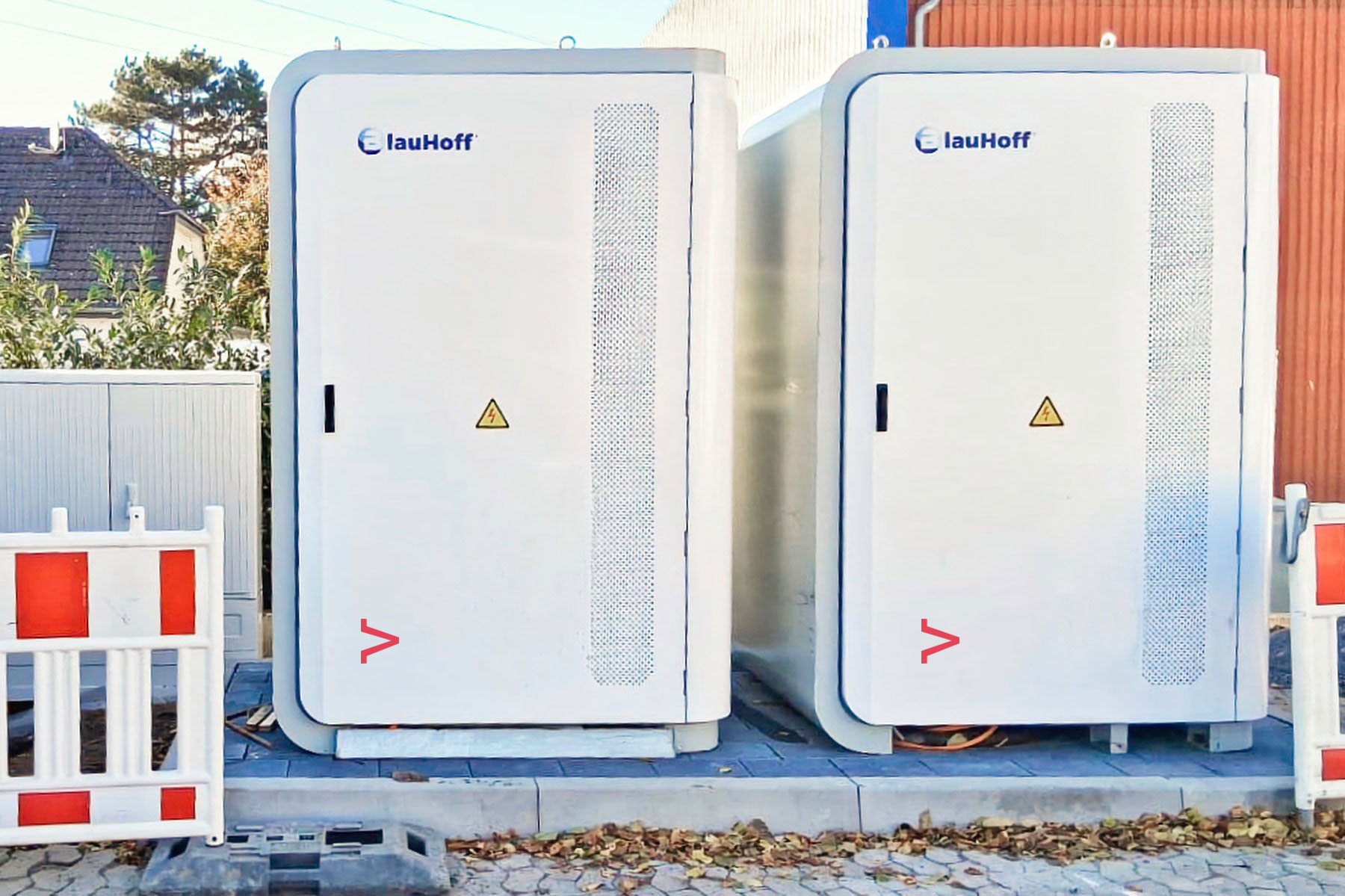 So sieht’s aus: Unsere Speicher benötigen nur wenige Quadratmeter und fügen sich unauffällig in Gewerbeflächen, Höfe oder Randbereiche ein.